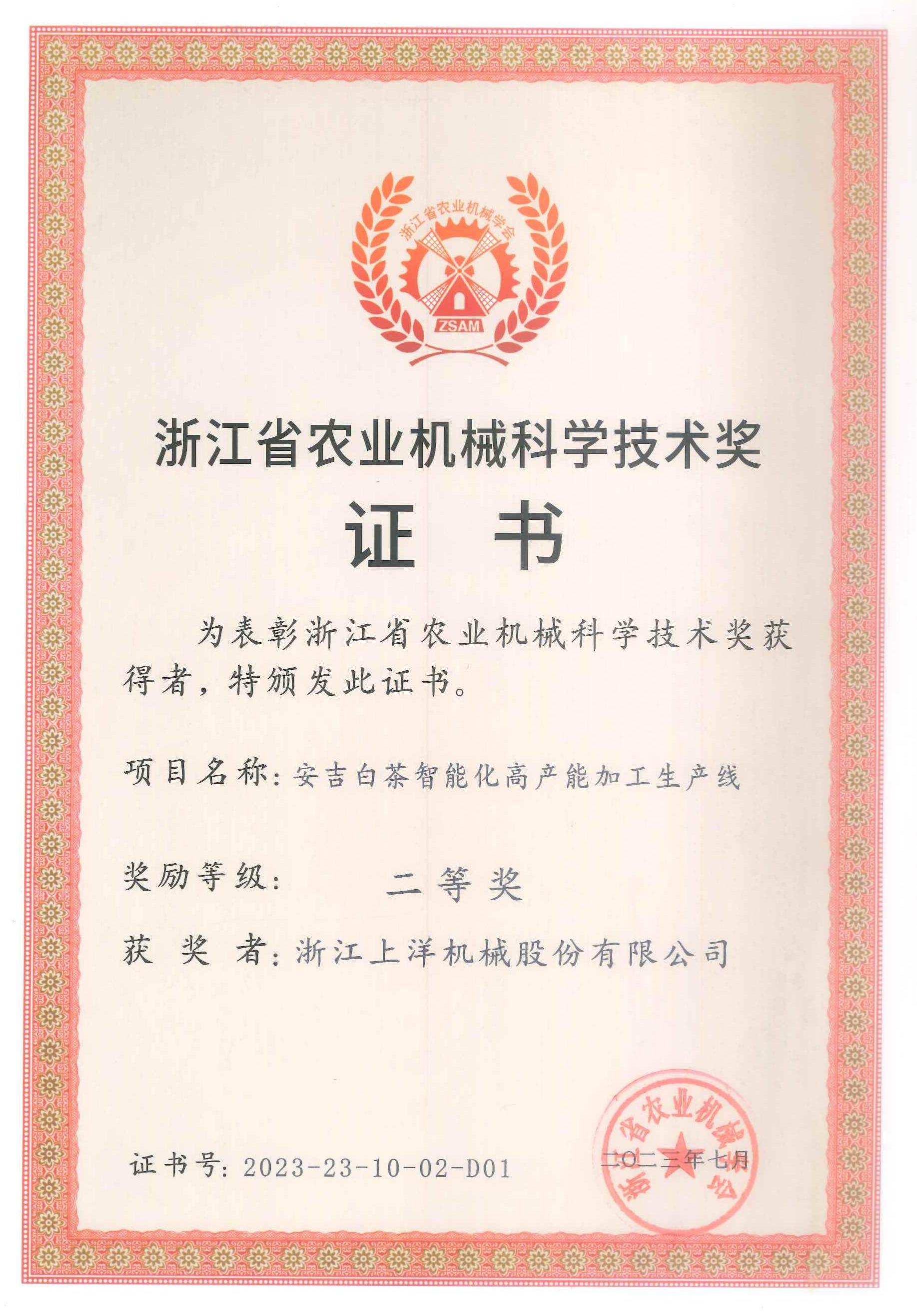 2023年浙江省農(nóng)業(yè)機械科學技術獎二等獎