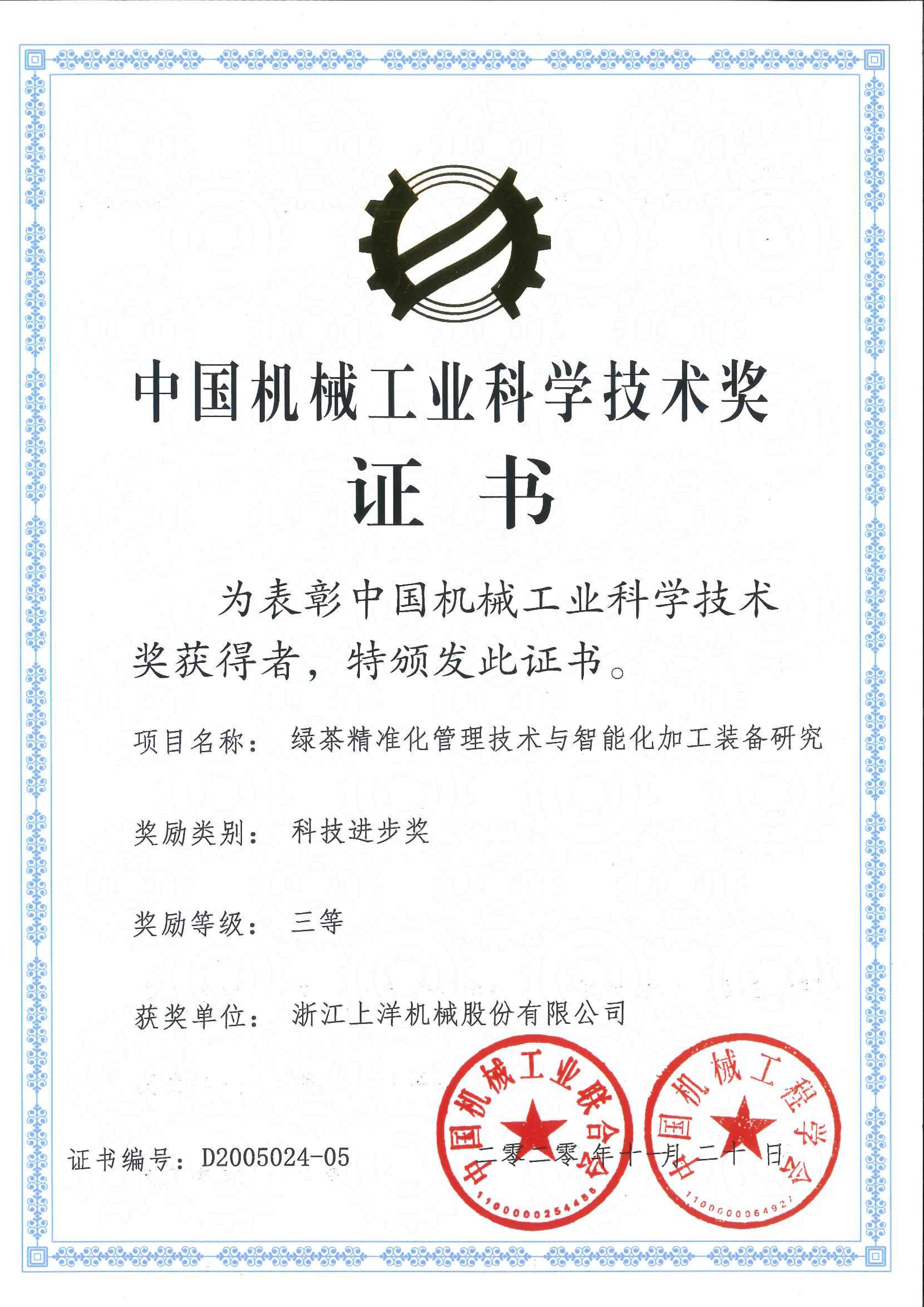 2020年中國(guó)機(jī)械工業(yè)科技進(jìn)步三等獎(jiǎng)