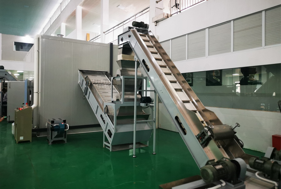 作業(yè)原理:連續(xù)發(fā)酵機可在發(fā)酵過程中實現(xiàn)供氧、換氣、加溫、增濕等功能,科學(xué)布局溫、濕度管道保證相對恒定的發(fā)酵環(huán)境,連續(xù)發(fā)酵機主機置于發(fā)酵箱體(房)內(nèi),設(shè)置多層輸送網(wǎng)帶,揉捻葉達(dá)到發(fā)酵要求后,自動流出到下個環(huán)節(jié)。